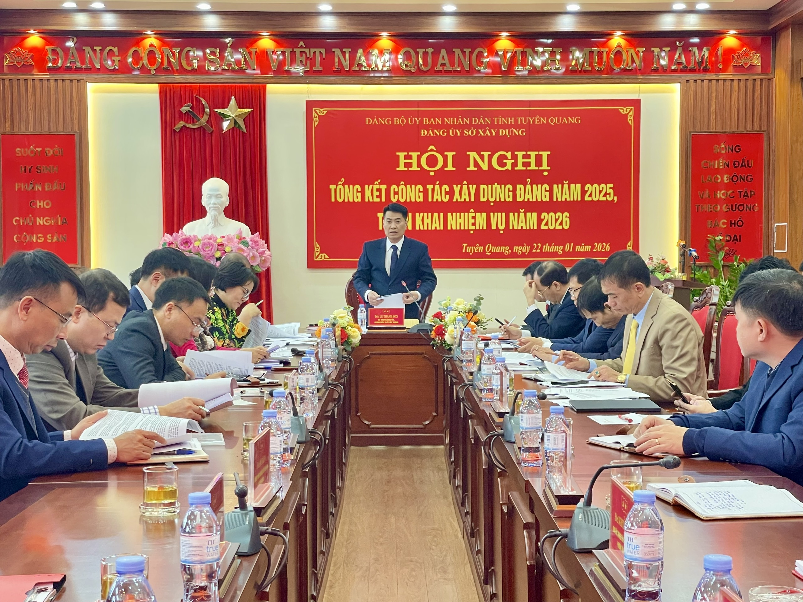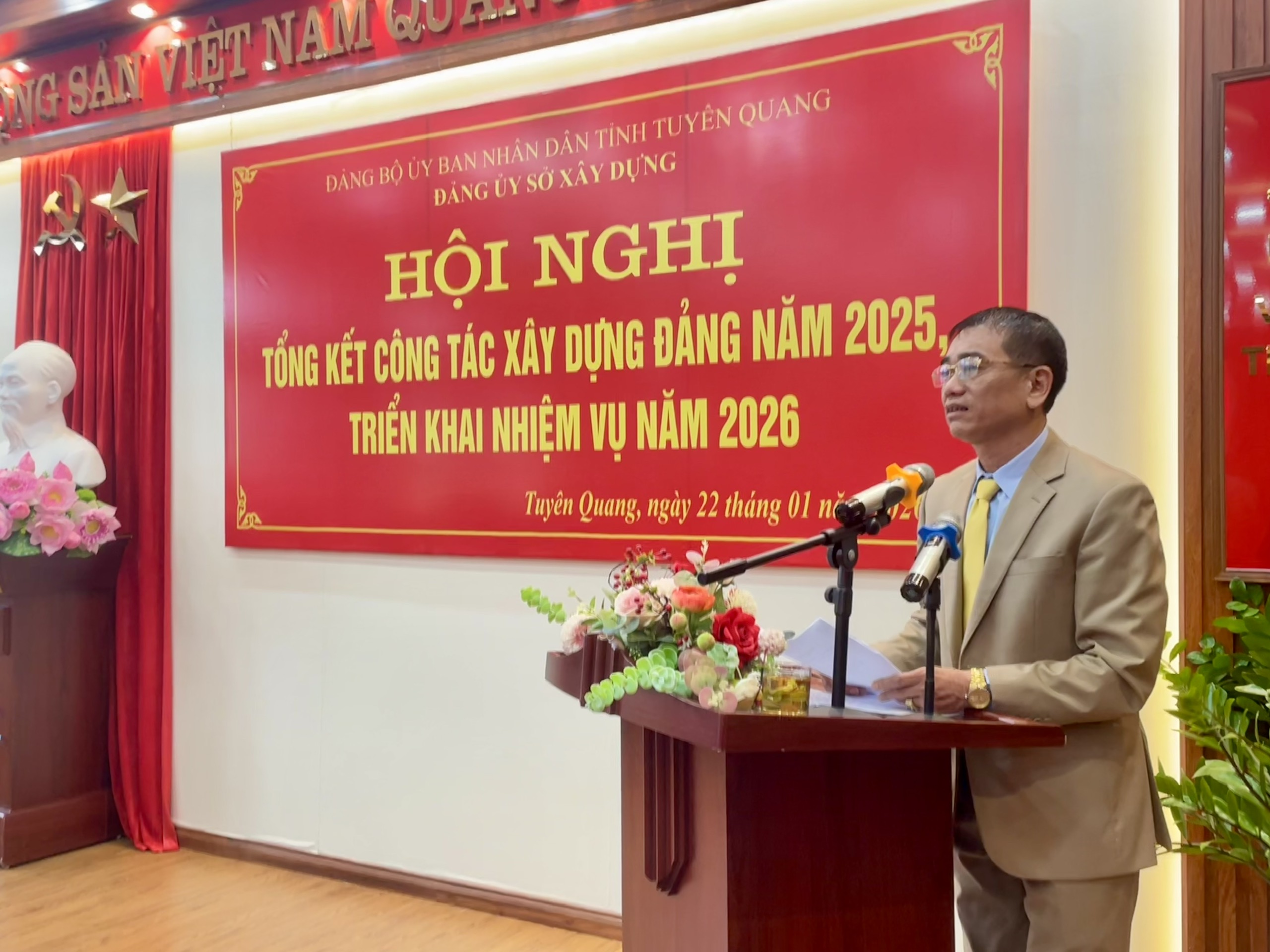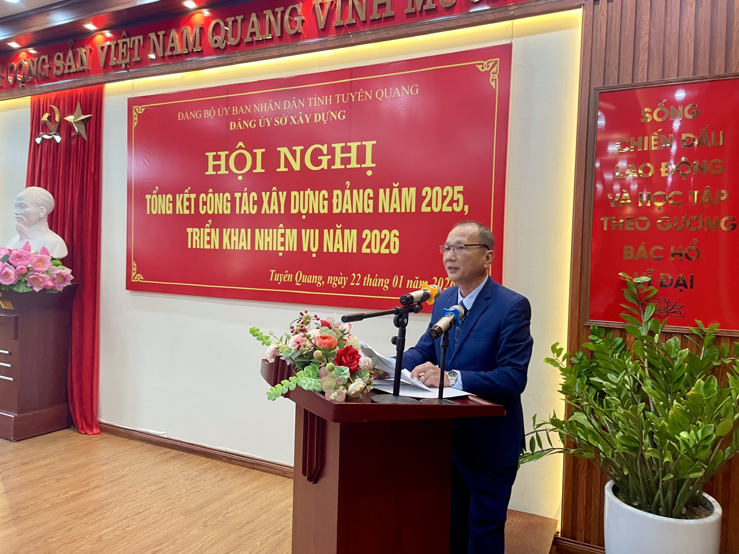 Trong năm 2025 , Đảng uỷ và tập thể lãnh đạo Sở Xây dựng đã tập trung, quyết liệt triển khai thực hiện các văn bản chỉ đạo, điều hành của Tỉnh ủy, Hội đồng Nhân dân, Ủy ban Nhân dân tỉnh, với trọng tâm là Nghị quyết Đại hội Đảng bộ tỉnh Tuyên Quang nhiệm kỳ 2020 - 2025; các Nghị quyết chuyên đề của Ban Chấp hành Đảng bộ tỉnh về sáp nhập địa giới hành chính; cùng các chương trình, kế hoạch phát triển kinh tế - xã hội 5 năm 2021 - 2025. Năm 2025 là năm cuối nhiệm kỳ, mang ý nghĩa quyết định trong việc hoàn thành các chỉ tiêu về quy hoạch, phát triển đô thị và nhà ở. Sở đã chủ động xây dựng, ban hành và tổ chức thực hiện các chương trình, kế hoạch công tác ngay sau khi có quyết định sáp nhập. Đối với các vấn đề quan trọng, cấp thiết như kiện toàn bộ máy, sắp xếp nhân sự và bàn giao tài sản, tài chính giữa hai đơn vị cũ (Tuyên Quang và Hà Giang), lãnh đạo Sở đã tổ chức thảo luận dân chủ, thống nhất trong Đảng ủy và Ban Giám đốc để đề ra các biện pháp chỉ đạo, điều hành linh hoạt, đảm bảo hoạt động quản lý nhà nước của ngành không bị gián đoạn. Trong quá trình tổ chức thực hiện nhiệm vụ, Đảng uỷ Sở Xây dựng luôn bám sát định hướng chuyên môn của Bộ Xây dựng và sự lãnh đạo của Tỉnh ủy; thường xuyên kiểm điểm, đánh giá tiến độ thực hiện các đồ án quy hoạch lớn, các dự án trọng điểm của tỉnh. Lãnh đạo Sở đã quyết liệt chỉ đạo việc rà soát, cắt giảm thủ tục hành chính, bảo đảm sự hài hòa, đồng bộ và thống nhất trong việc áp dụng các quy định pháp luật sau sáp nhập tỉnh.